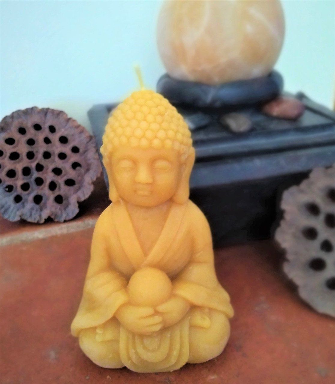 Bougie grand bouddha moulée en cire d’abeille française pure 100% naturelle