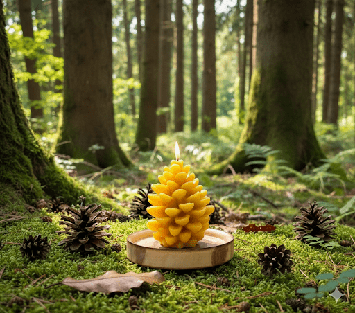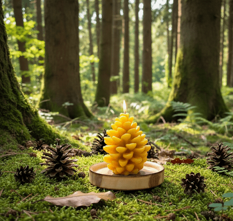 Bougie pomme de pin moulée en cire d’abeille française pure 100% naturelle, 1er choix