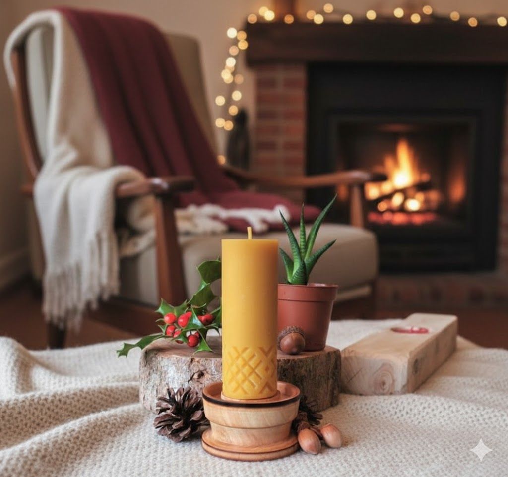 Bougie ronde croix en pure cire d'abeille française 100 %naturelle, sans colorant ni additif