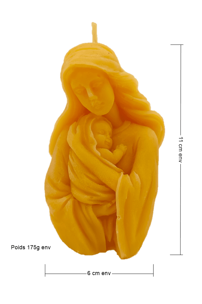 Bougie "Vierge et l'enfant" moulée en cire d’abeille française pure 100% naturelle